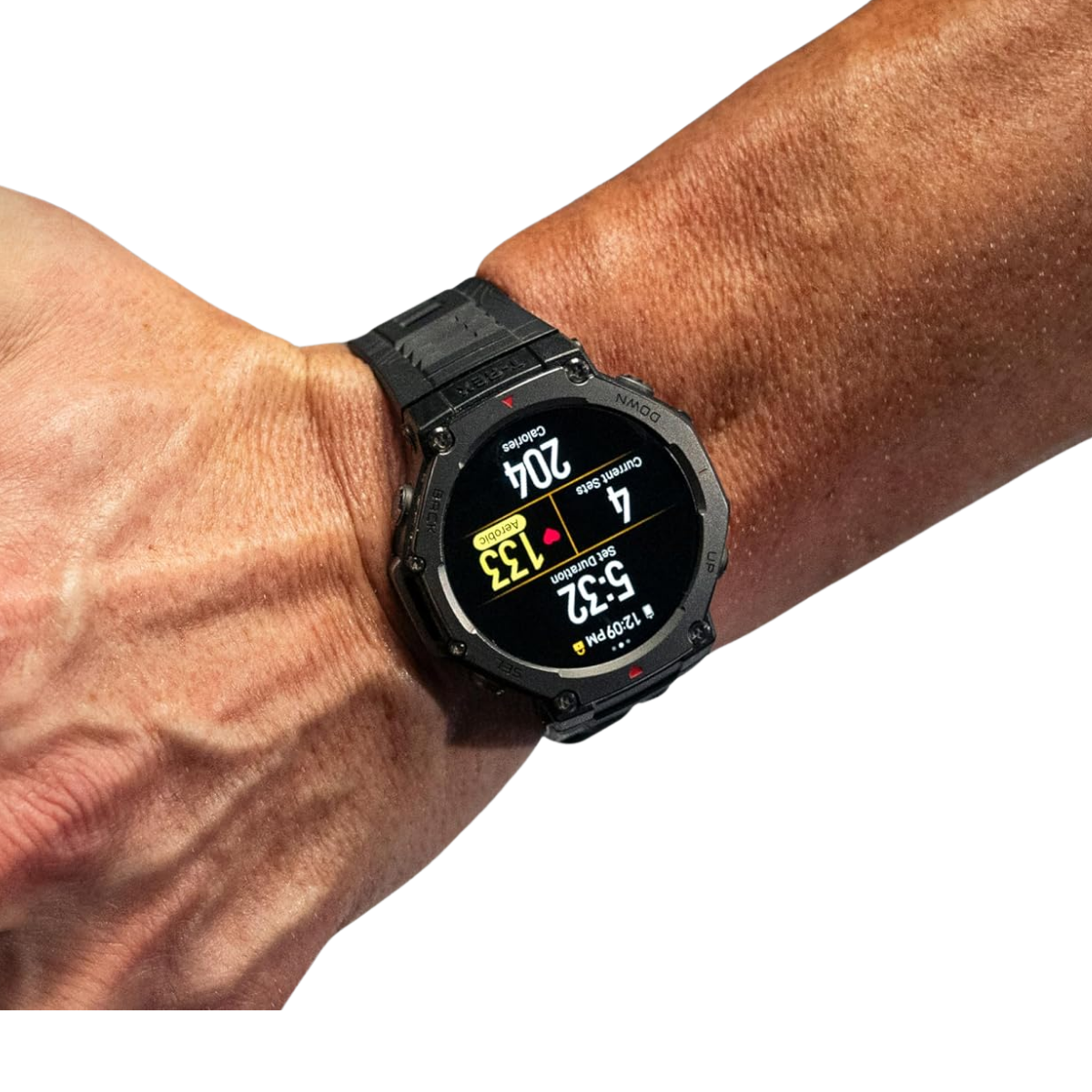 A tela de 1,5 polegadas do Amazfit T-Rex 3 oferece visualização clara e nítida, facilitando o acompanhamento das informações mesmo sob luz intensa. É uma solução ideal para quem busca praticidade na leitura de dados de treino, navegação e notificações em diferentes ambientes.