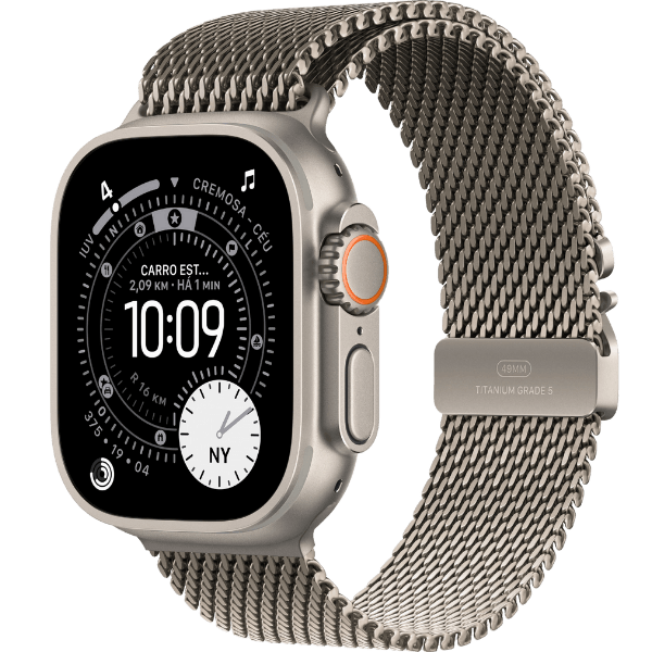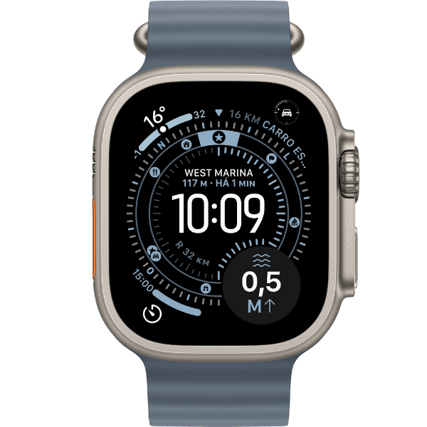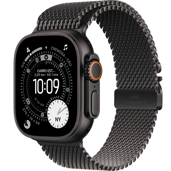 Outro diferencial é o Action Button, um botão físico personalizável que permite iniciar treinos, marcar segmentos ou acionar a lanterna com um simples toque. O dispositivo ainda inclui GPS de alta precisão, conectividade 5G, compatibilidade com o watchOS 26 e novos recursos de fitness que elevam a experiência esportiva.
