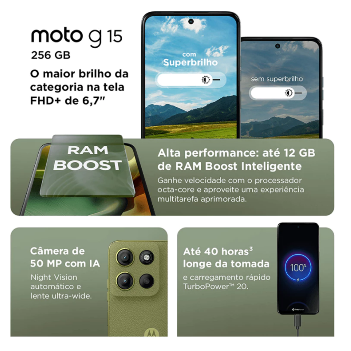 O Motorola Moto G15 é uma excelente escolha para quem procura um smartphone equilibrado, com tela Full HD+, câmera eficiente, bateria durável e recursos modernos como NFC. Um modelo confiável, ideal para uso diário com desempenho estável e ótima experiência de visualização.