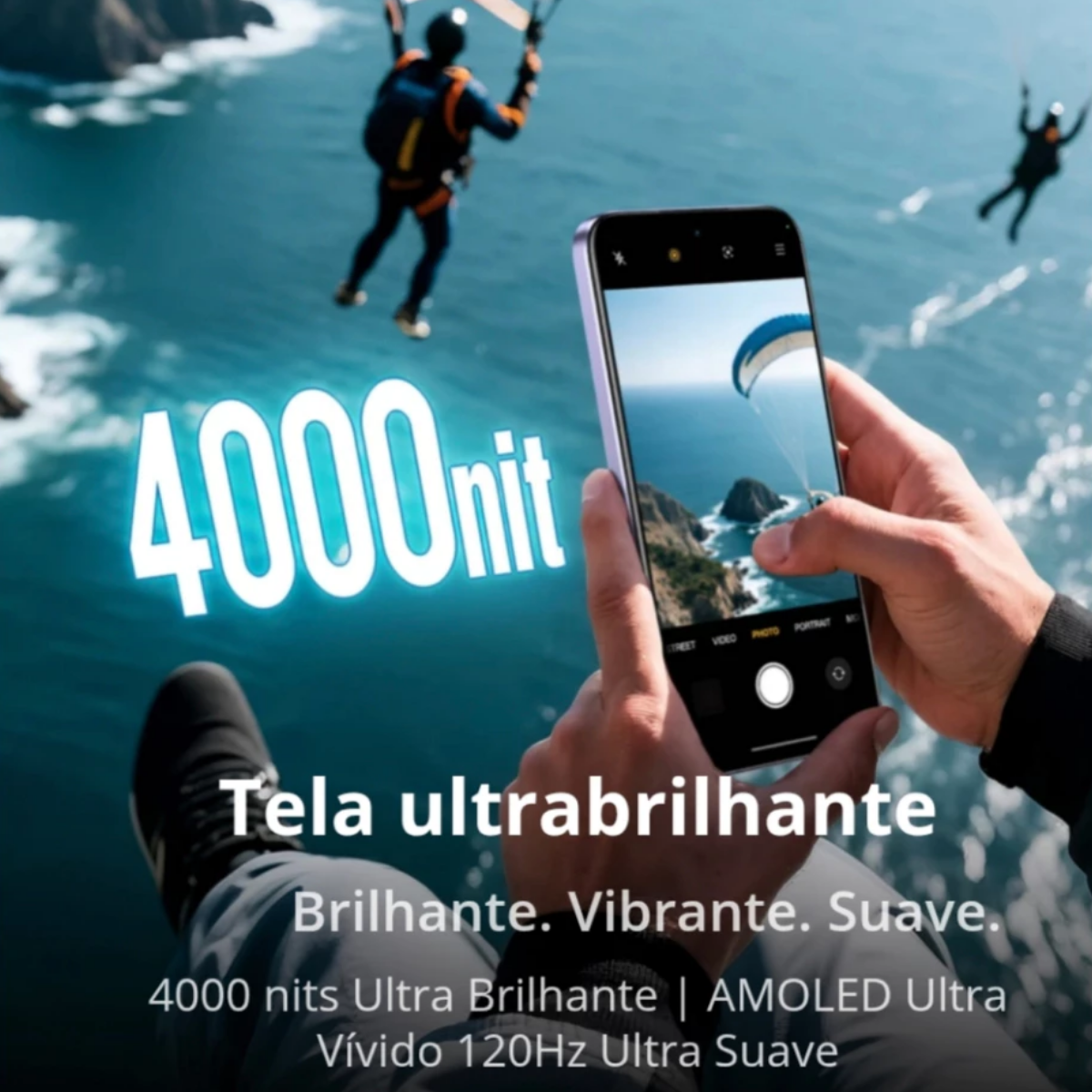 A tela é um dos principais destaques do modelo. Com 6,8 polegadas, tecnologia AMOLED e taxa de atualização de 120 Hz, o Realme C85 Pro entrega imagens com excelente contraste, cores vivas e uma navegação extremamente fluida. Isso significa mais qualidade ao assistir conteúdos em streaming, rolar redes sociais com suavidade e jogar com ótima resposta visual. Além disso, a resolução elevada garante boa definição e nitidez, deixando tudo mais agradável, desde textos até fotos e vídeos.